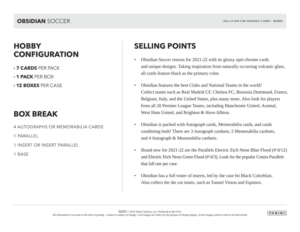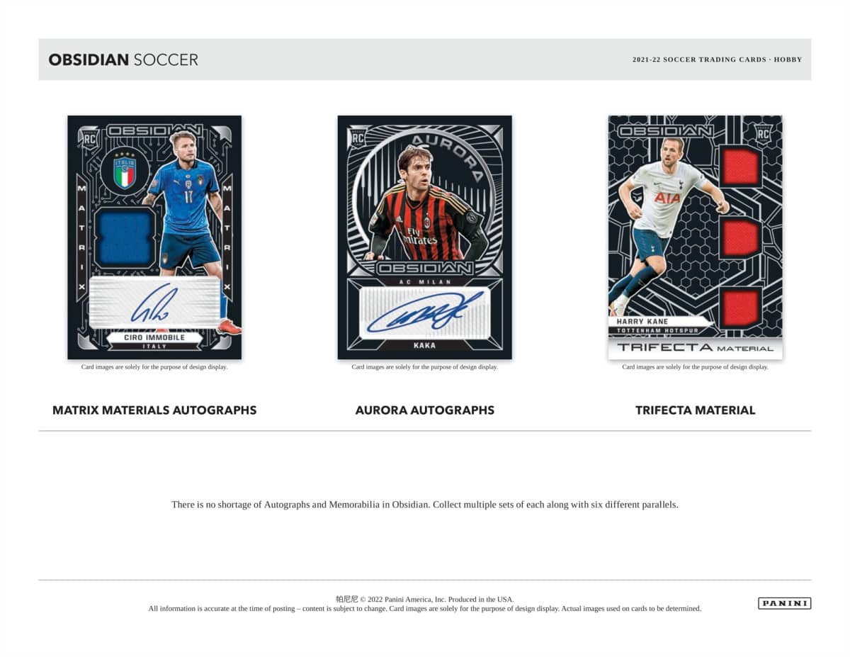 Obsidian Soccer returns for 2021-22 with its glossy opti-chrome cards and unique designs. Taking inspiration from naturally occurring volcanic glass, all cards feature black as the primary color.